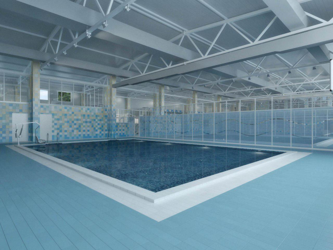 25-метровый бассейн для взрослых рассчитан на 6 плавательных дорожек. Его максимальная глубина – 3,5 метра. Для детей будет работать двухуровневый бассейн глубиной от 60 до 90 см.
