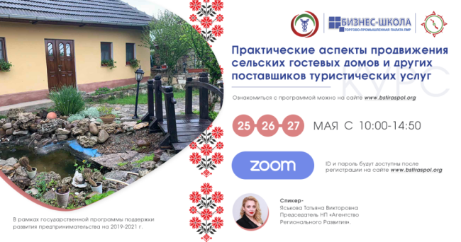 Тирасполь, 17 мая. /Новости Приднестровья/. «Практические аспекты продвижения сельских гостевых домов и других поставщиков туристических услуг» – новый курс от бизнес-школы Торгово-промышленной палаты Приднестровья.
