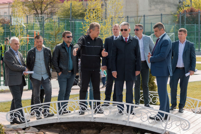 После завершения работы с проектной документацией и графиками проведения работ  совещание продолжилось в выездном формате. Инспекционная группа во главе с Президентом побывала на различных точках. Подрядчики рассказали о тонкостях будущего оформления университетских корпусов. Говорили о планах по дальнейшему озеленению и благоустройству территорий. Вадим Красносельский подчеркнул, что сочетание эстетики и функциональности должно быть оптимальным. Уже заказано порядка сотни скамеек. Продумано уличное освещение, в том числе в зоне Wi-Fi. Она будет обустроена для учащихся в новом сквере, центральным элементом которого станет статуя, символизирующая студенчество. Преобразится также сектор, где установлен памятник Т. Г. Шевченко, чье имя носит приднестровский вуз. Немного изменится и облик памятника: постамент сделают более облегченным и изящным.