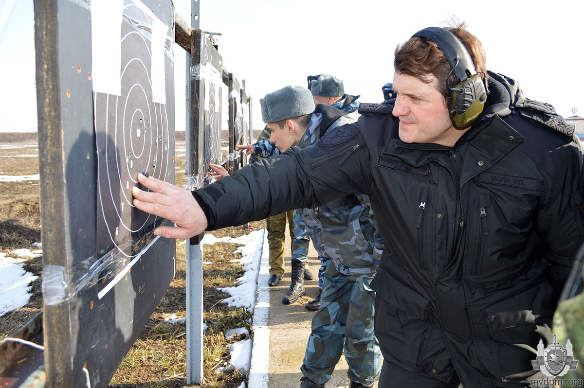 Первыми к огневому рубежу вышли глава ведомства и руководители института. Они на собственном примере показали молодому поколению технику прицеливания и ведения боевого огня. «Для того чтобы научить курсантов института, нужно самому владеть всеми навыками военного дела», – отметил Руслан Мова.