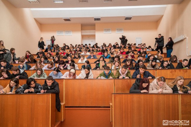 Тирасполь, 2 декабря. /Новости Приднестровья/. Кто сконструировал танк Т-34? Сколько длилась Великая Отечественная война? Как звали самого молодого советского пилота? Это лишь несколько вопросов из теста по истории Великой Отечественной войны. Международная акция прошла сегодня в Приднестровском госуниверситете им. Т. Г. Шевченко. Свои знания о событиях 1941-1945 гг. проверяли студенты Приднестровского госуниверситета, Военного института Минобороны, Тираспольского юридического института МВД и учащиеся столичных школ — всего более 200 человек.