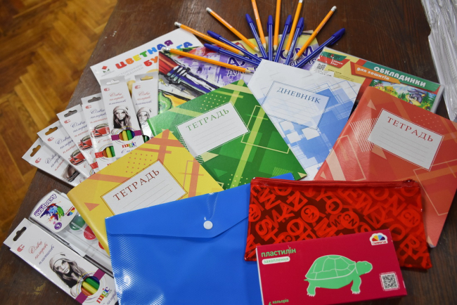 Канцелярские наборы были сформированы с учётом возрастных особенностей школьников. В них вошли тетради, дневники, ручки, карандаши, пеналы, альбомы, обложки, папки и пластиковые кейсы, краски, пластилин, цветная бумага.