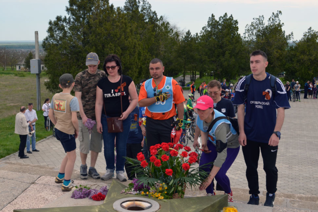 Утром, перед стартом, энтузиасты собрались на столичном Мемориале Славы, где возложили цветы и почтили минутой молчания память защитников и освободителей советского народа от фашизма.