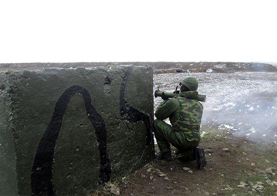 «Огонь по мишеням, имитирующим наступающую пехоту и бронированную технику условного противника, вёлся из ручных противотанковых гранатометов РПГ-7, автоматических гранатомётов станковых АГС-17 и станкового противотанкового гранатомёта СПГ-9», - говорится в сообщении.