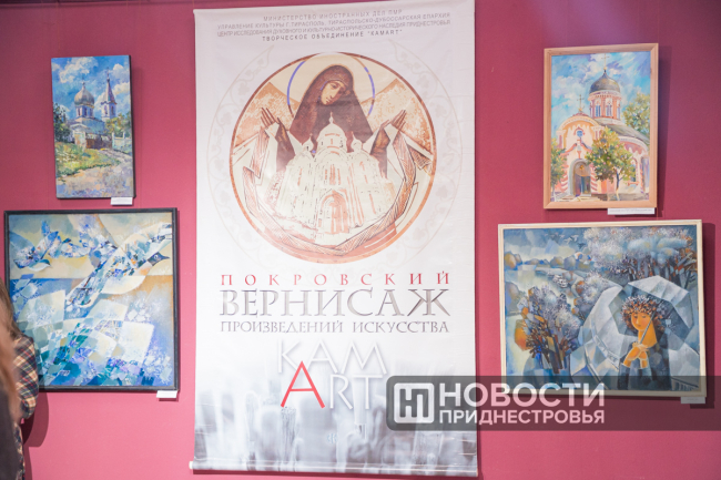 Выставка «XVI Покровский вернисаж» представлена творческим объединением KAMART и посвящена Дню города Тирасполь, 25-летнему юбилею Тираспольско-Дубоссарской епархии и празднику Покрова Пресвятой Богородицы.
