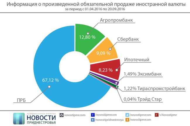 Клиенты «Агропромбанка» продали 12,8%, «Приднестровского Сберегательного банка» – 9,09%, АКБ «Ипотечный» – 8,23%, «Эксимбанка» – 1,49%, «Тираспромстройбанка» – 1,22%, ООО КО «Трэйд Стар» – 0,04%.