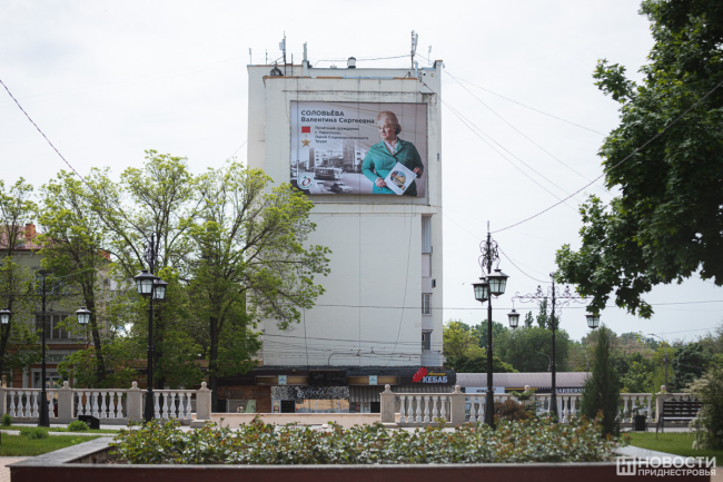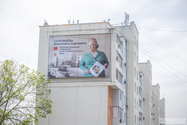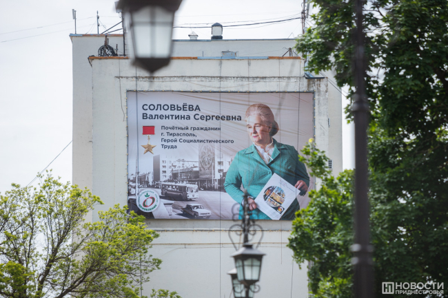 Большой баннер с портретом Валентины Соловьёвой появился в Тирасполе