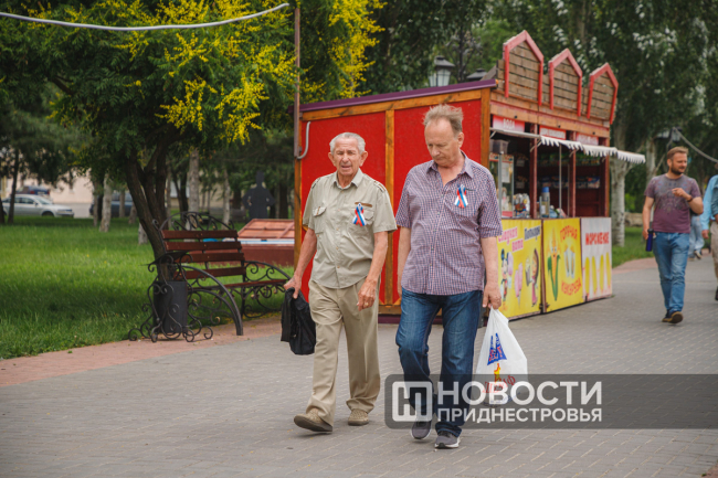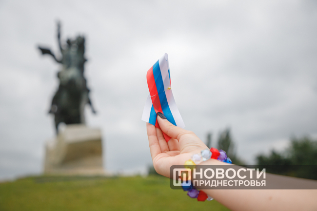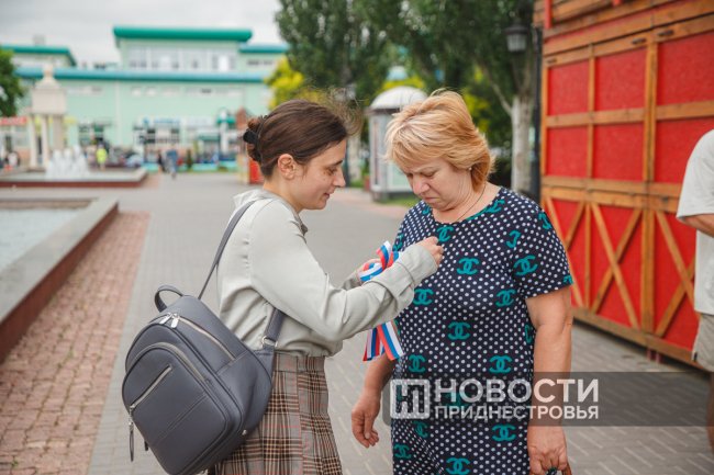 Помимо флага, о празднике приднестровцам напоминают ленточки, которые раздавали всем желающим.