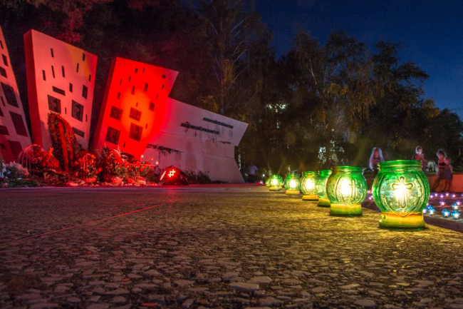 Перед возложением коллектив городского Дворца культуры имени Павла Ткаченко продемонстрировал небольшое представление. Центральная тема постановки – истории людей, у которых отняли родных и близких.