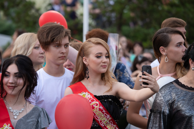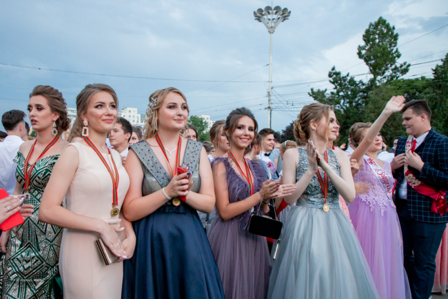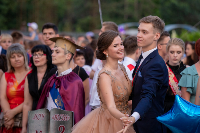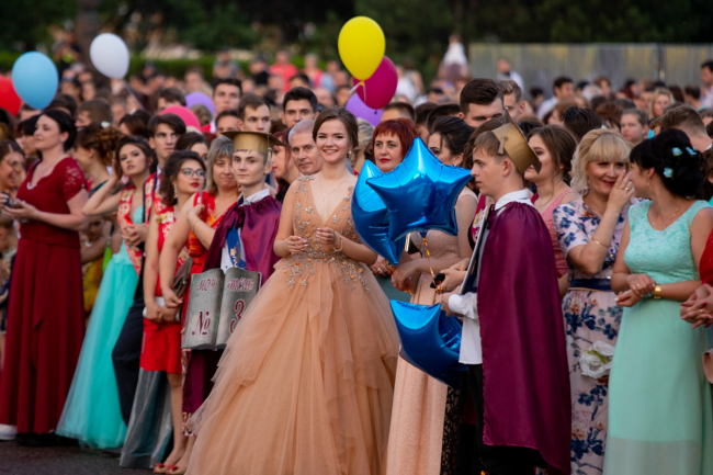 Торжественная проходка перед учителями и родителями, взлетевшие под кипеловское «Я свободен» воздушные шары, лиричный вальс и дискотека под открытым небом. Уже завтра они перестанут быть школьниками, ну а пока сегодняшняя ночь - вся их.