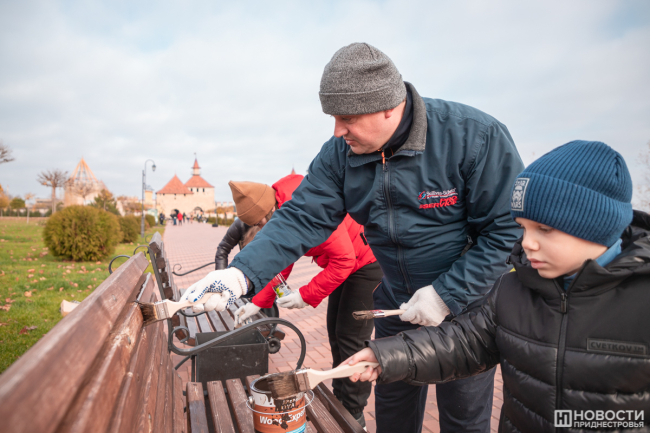 Сотрудники МВД убирали Покровский парк в Тирасполе и занимались хозяйственным обустройством Республиканского дома ребенка и Тираспольского дома-интерната для престарелых и инвалидов, а студенты Приднестровского госуниверситета, работники Государственной службы по спорту и Фонда госрезерва наводили порядок в столичном парке «Победа».