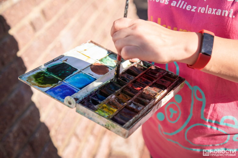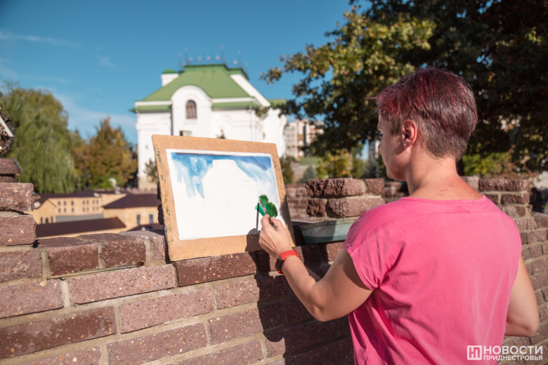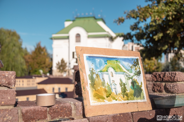 Светлана Гуцу выходит на пленэр не первый день. Над своим пейзажем художница работает уже третий сеанс. На большом холсте она маслом выводит здание Тираспольско-Дубоссарской епархии. Один выход на природу занимает, как правило, 3-4 часа, рассказывает мастер.