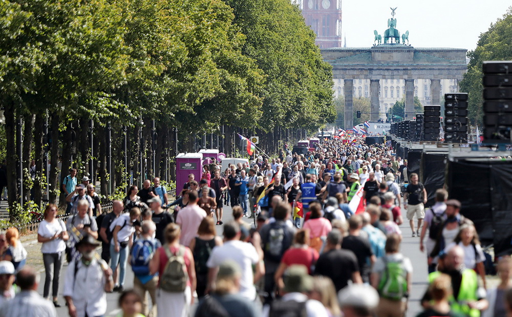 Накануне массовые протесты граждан против политики немецких властей, связанной с пандемией коронавируса, прошли в столице Германии, Берлине. Толпа протестующих собралась у Бранденбургских ворот. По сообщениям СМИ, акция в Берлине стала одной из крупнейших на последние 15 лет в столице ФРГ. В ходе протестов задержаны порядка 300 человек.
