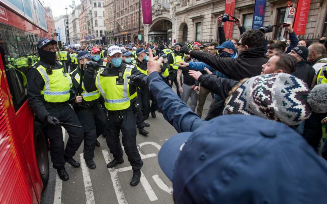 В Лондоне (Великобритания) марш противников ограничительных мер начался у Гайд-парка и завершился на правительственной улице Уайтхолл, в нём приняли участие несколько тысяч человек. Манифестанты демонстративно не надевали маски, жгли дымовые факелы и несли плакаты с обличающими власть лозунгами.