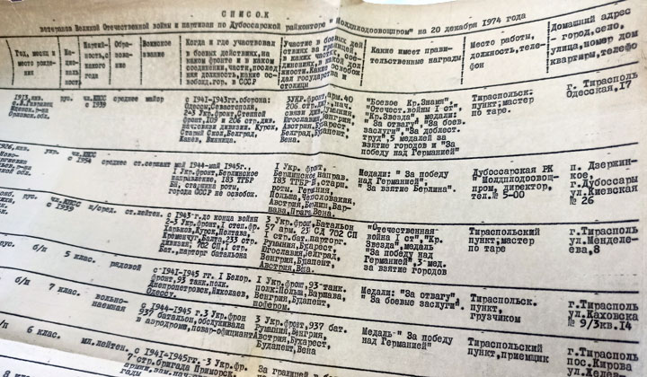 Данные о дубоссарских ветеранах ВОВ будут доступны в электронном виде