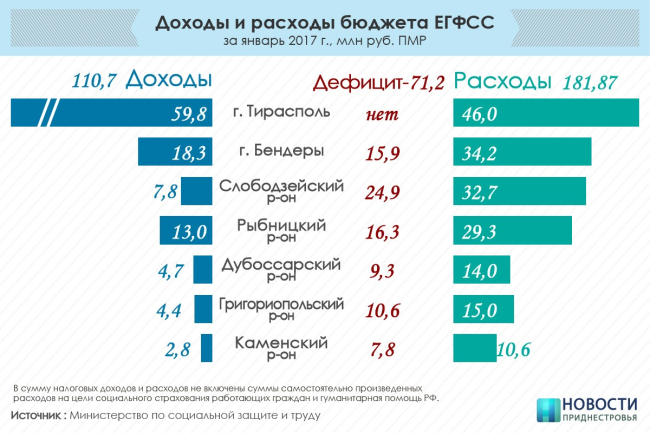 Тирасполь, 22 февраля./ИА «Новости Приднестровья»/. Расходы госказны в январе 2017 года превысили доходы консолидированного бюджета на 162 миллиона рублей. В прошлом месяце госфинансы составили 247,9 миллиона, тогда как затраты на гособязательства Минфин оценил в 401 миллион рублей.