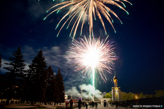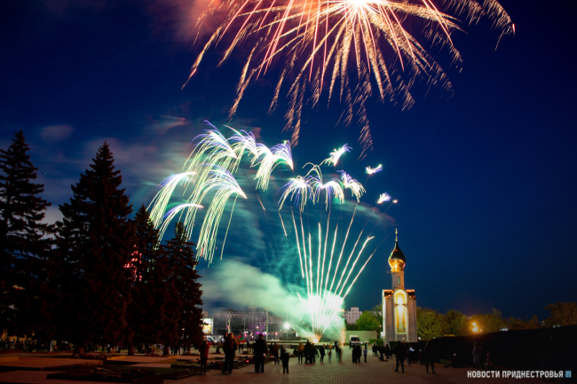 Тирасполь, 9 мая. /Новости Приднестровья/. Празднование Дня Победы в Приднестровье завершилось салютом. Небо над столичной площадью и Днестром озарили яркие краски. Такой подарок приднестровцам сделала компания «Интерднестрком». На праздничный фейерверк государством не были потрачены бюджетные средства.