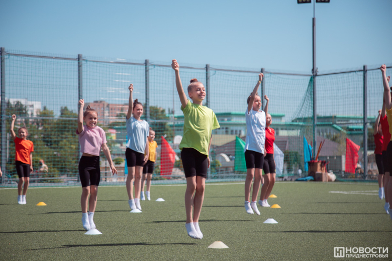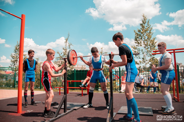 На спортплощадке тоже кипела жизнь. Небольшая физразминка сменилась акробатическими номерами и футбольными играми. Рядом поднимали штангу юные силачи.