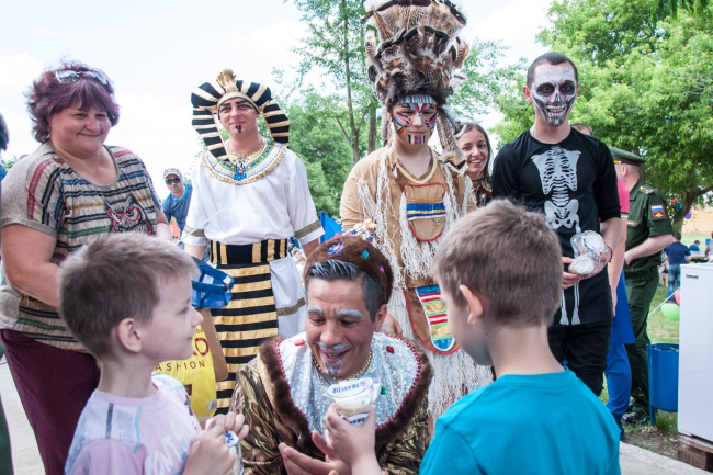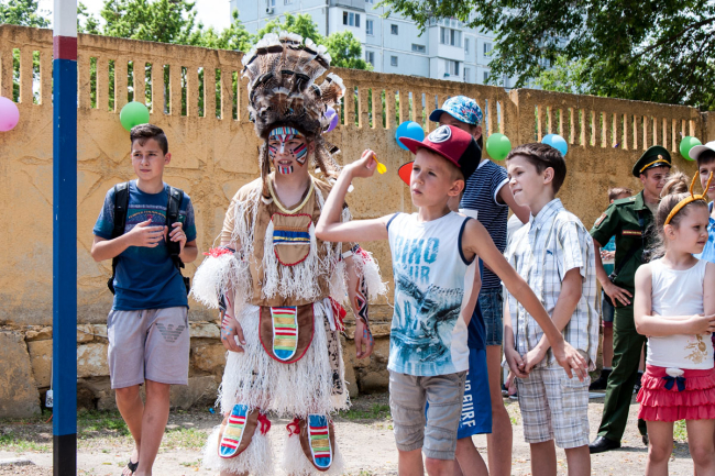 Тирасполь, 1 июня. /Новости Приднестровья/. День защиты детей отмечали и в Оперативной группе российских войск в Приднестровье. Праздник для детей сотрудников здесь проходит каждый год, но в этом — с большим размахом. Как и положено в этот день, на входе каждый ребёнок получал по мороженому — кто из рук индейца, а кто-то от фараона или пирата.