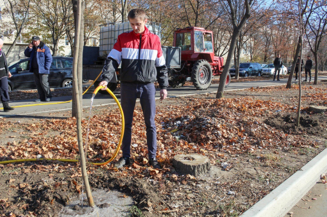 «Деревья высотой 2-2,5 метра, упакованные с комом для посадки. Они приживаются в 99,9%. Преимущество высадки деревьев с закрытой корневой системой в том, что их мы поливаем год, и дальше они уже растут без вмешательства специалистов. А за деревьями, высаженными с открытой корневой системой, нужно ухаживать около 3 лет», – рассказал начальник службы зеленого строительства МУП "Спецзеленстрой" Тирасполя Юрий Дырул.