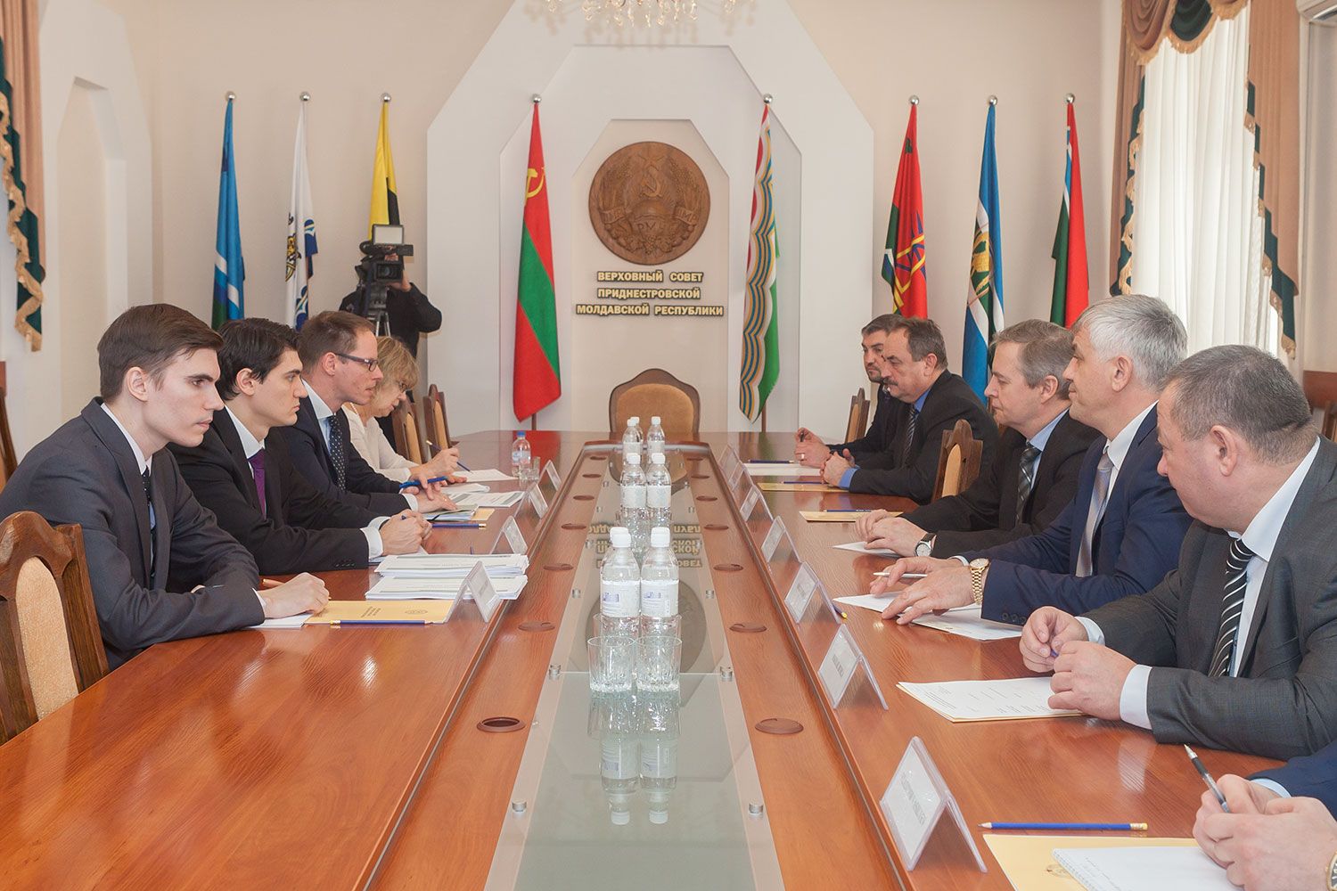 Тирасполь, 13 декабря. /Новости Приднестровья/. Парламентарии Александр Коршунов, Сергей Чебан и Михаил Бурла встретились с представителями немецкой консалтинговой компании «Berlin Economics» Йоргом Радеке и Дмитрием Червяковым, сообщила пресс-служба Верховного Совета.