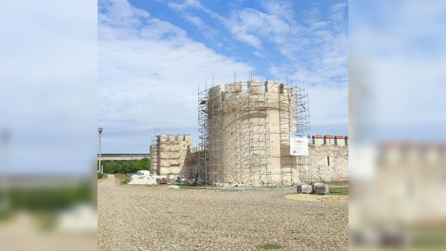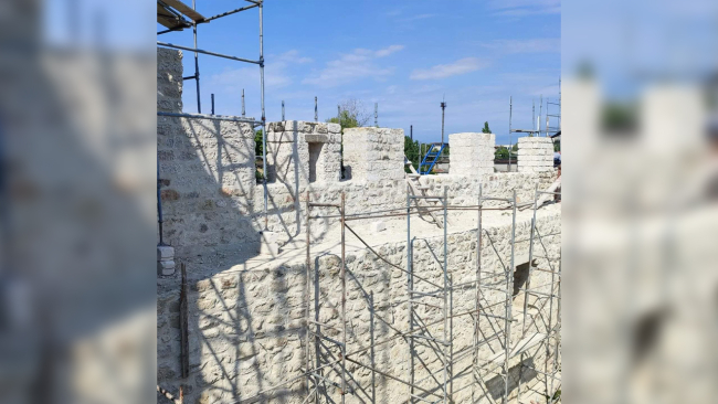 Завершив эти работы, турецкие специалисты приступили к самому главному этапу реставрации – подготовке первых трёх башен западной стены к установке деревянной крыши. Прежде всего нужно восстановить каменные зубцы на башнях, на которые потом установят деревянные балки.