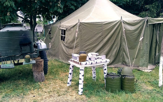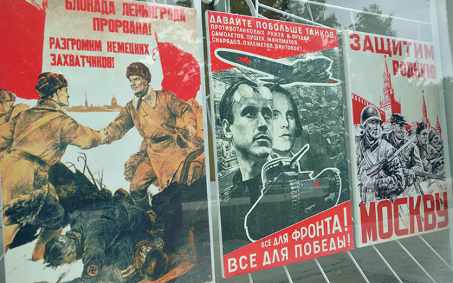 Историко-краеведческий музей подготовил передвижную экспозицию «Путь к победе», имитирующую военный городок. Здесь и палатка, и полевая кухня, и командирская комната. На выставке можно было увидеть такие экспонаты, как каски, военная форма, противотанковые ежи, предметы военного быта.
