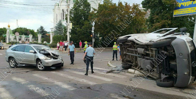 ДТП в центре Тирасполя. Перевернулась маршрутка с пассажирами