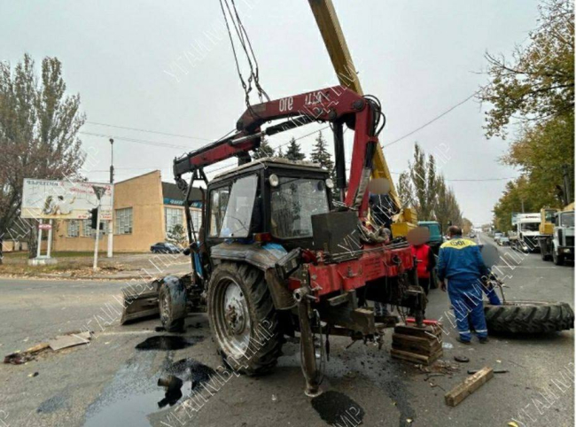 ДТП в столице: Трактор опрокинулся из-за обрыва оси заднего колеса