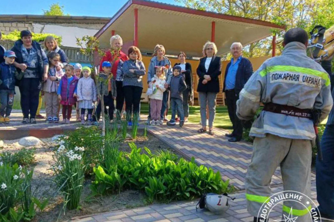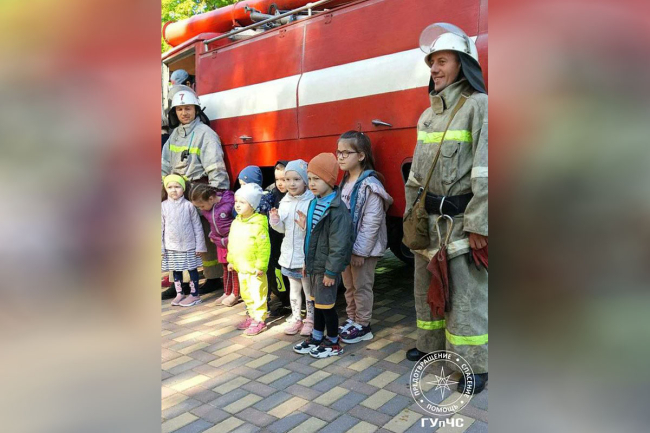 По завершении занятий огнеборцы рассказали ребятам об экипировке, которую они используют, выезжая на места происшествий, и показали принцип работы трёхколенной лестницы. Потом сфотографировались с детьми на память.