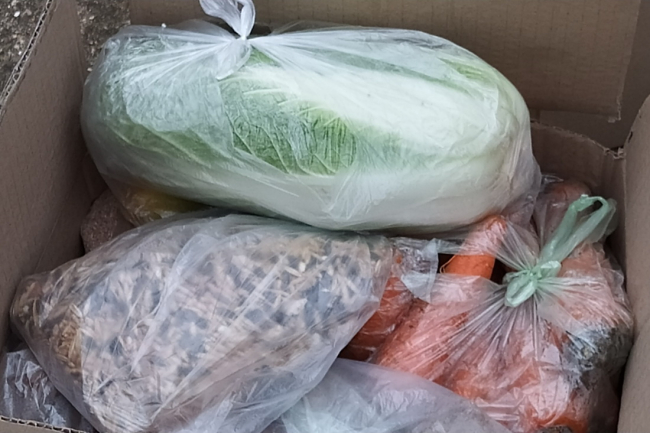 Ребята собрали для питомцев фрукты и овощи, зерно и крупы