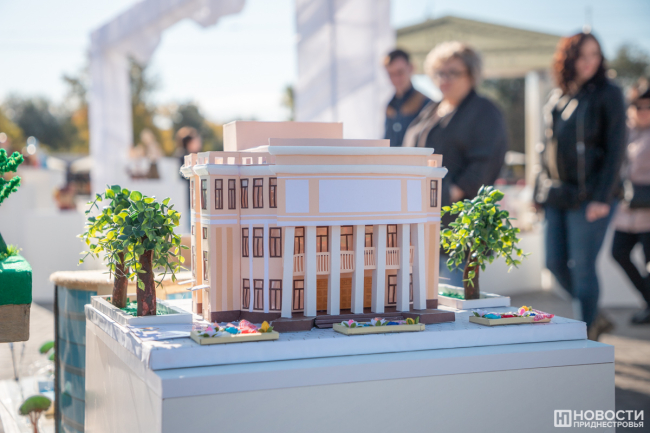 Рядом расположили выставку макетов самых примечательных городских зданий и локаций. Например, коллектив столичного детского сада № 11 «Капитошка» сделал макет Государственного театра драмы и комедии имени Н.С. Аронецкой.