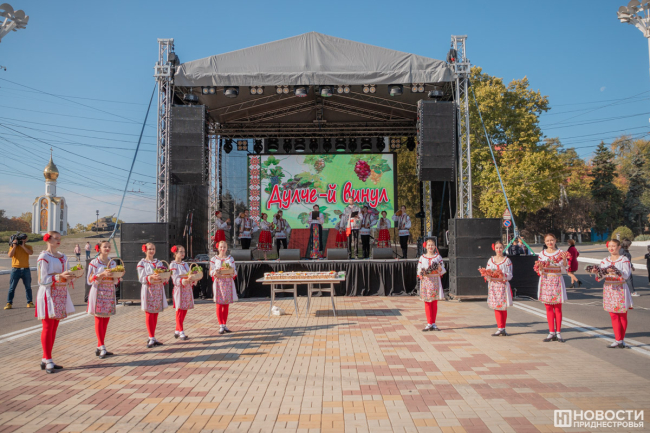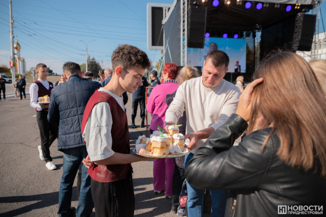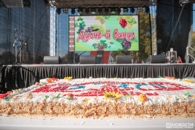 Но центральным событием этого утра стал фестиваль «Дулче-й винул», проходивший также на центральной площади. Горожан с праздником поздравляли солисты и творческие коллективы столицы. А ещё всех желающих угостили огромным тортом, который специально к юбилею города испёк Тираспольский хлебокомбинат.