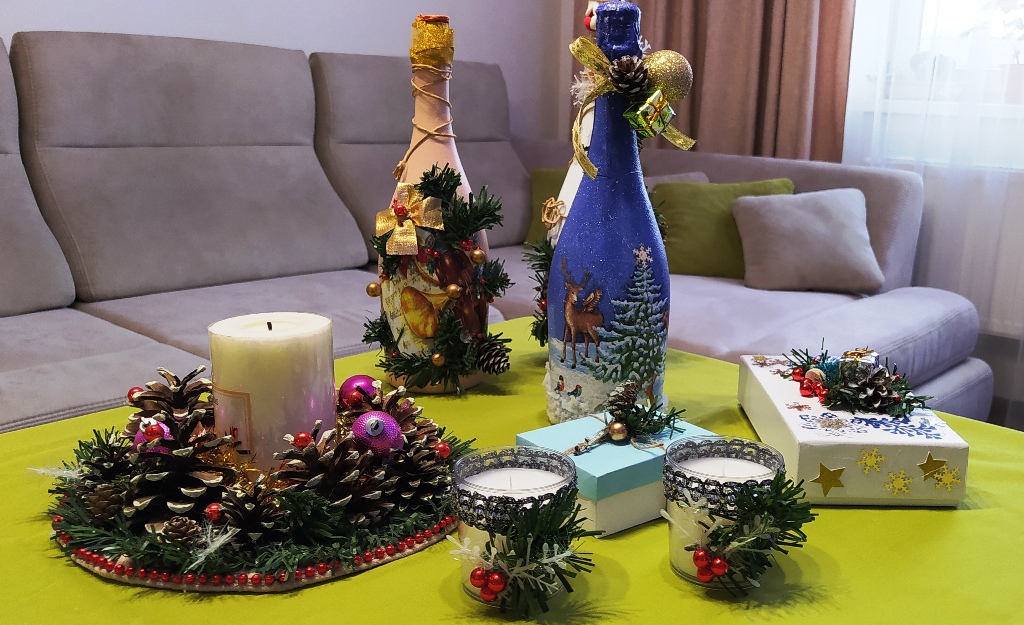 Готовые поделки Виктория Шелехова дарит родным и знакомым. Говорит, что в каждую работу вкладывает частичку своей души. Основное направление – это декупажная техника, которую она применяет в украшении посуды, декоративных бутылок, шкатулок, предметов интерьера.