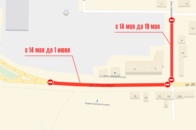 По тем же причинам с 14 по 19 мая будет ограничено движение транспорта по пер. Христофорова на участке от ул. Пушкина до ул. 25 Октября. Об этом сообщается на сайте столичной госадминистрации.