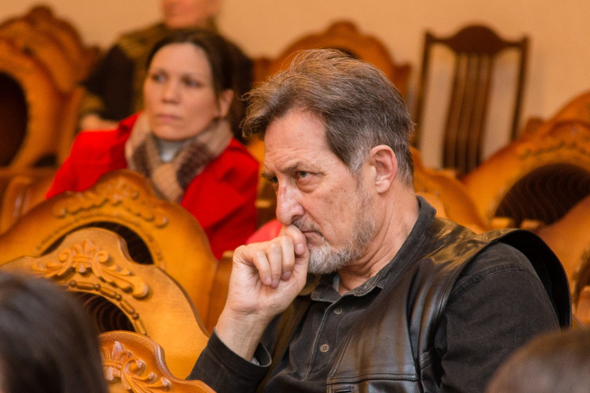 До начала нынешнего концерта почти час. Коридоры Дворца ещё пусты, лишь на входе дежурят несколько сотрудников культурного комплекса. В поисках информации о гостьях и программе мероприятия вместе с фотографом поднимаемся на третий этаж в кабинет главного дирижера Государственного симфонического оркестра ПМР Григория Мосейко. Именно по его приглашению артистки приехали на фестиваль. У Григория Алексеевича ученики, но 5 минут на общение с прессой он всё же находит.
