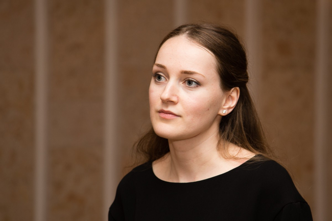 Некоторые музыканты считают, что по манере игры артиста можно многое сказать о его характере. Если посмотреть на то, как держится за фортепиано Юлия Захаркина, становится понятно, почему она репетировала чуть ли не до начала концерта. Исполнительница демонстрирует предельную сосредоточенность, ни один мускул лица не движется, тело застыло, будто статуя, и только кисти рук бегают по клавишам инструмента. Кажется, что для артистки не существует ничего, кроме музыки, и она готова играть за фортепиано бесконечно.
