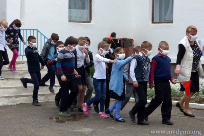 Григориополь, 22 мая. /Новости Приднестровья/. В григориопольской средней школе № 2 с лицейскими классами им. Андрея Стоева прошли учения, в ходе которых отрабатывались навыки совместных действий экстренных служб при возникновении и ликвидации ЧС. Согласно замыслу, около девяти утра в столовой вспыхнул пожар. Директор учебного заведения сообщила о ЧП по телефону «101», сообщает пресс-служба МВД.