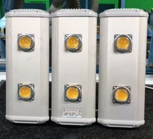«Они изготавливаются с применением самых современных светодиодных COB-матриц пятого поколения, выполненных по технологии Chip on board, поточное производство которых освоено только в конце 2020 года. Аналогов данным светильникам в части энергоэффективности на сегодняшний день практически не существует», – говорится на сайте предприятия.