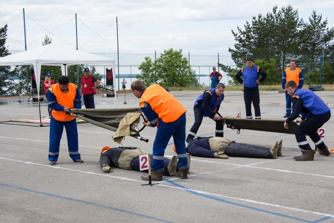 Последний, пятый этап, – это проверка правильности и быстроты выполнения операций по оказанию медицинской помощи на манекенах и тушению пожаров с использованием противопожарных средств.