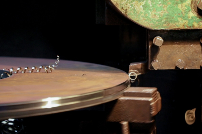 Рабочий день Кирилла начинается в 7:30 утра. Он становится за токарно-карусельный станок и приступает к обработке деталей будущего электродвигателя.