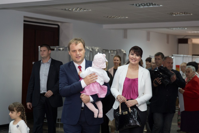 Тирасполь, 18 сентября. /ИА «Новости Приднестровья»/. Граждане России, проживающие в Приднестровье, принимают участие в выборах депутатов Госдумы РФ. В республике открыты 22 избирательных участка, 9 из которых в столице Тирасполе. Один из них (№8206) работает в Доме офицеров – здесь вместе с приднестровскими гражданами России проголосовал и Президент ПМР Евгений Шевчук с семьей.