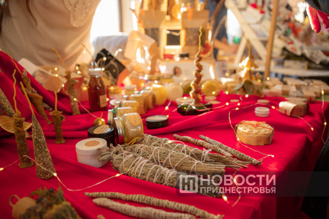 Джина и Александр Роготи приехали из Кишинёва, специально чтобы принять участие в ярмарке. С собой привезли различного рода свечки. Они – только ручной работы, из воска и трав, которые собирают и заготавливают сами. Весной начинают с крапивы и медуницы и далее – по сезону.