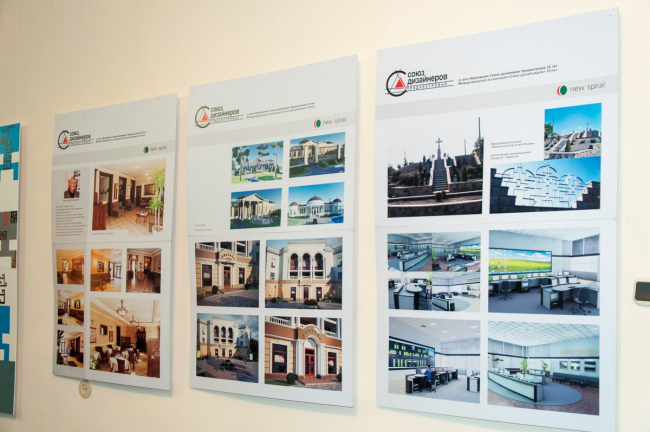Как рассказал председатель Союза Владимир Галанин, в экспозиции представлены различные работы, начиная от проектов воздвигнутых жилых строений, памятников архитектуры, торговых знаков (лэйблов), заканчивая макетами, которые, возможно, в будущем будут претворены в жизнь.
