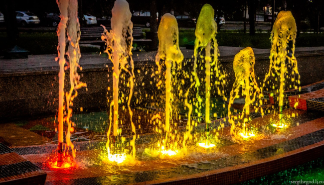 «Начали работать прошлым летом. Сначала хотели просто выполнить гидроизоляцию и облицевать фонтан мрамором. Потом было принято решение устроить подсветку, но не были заложены средства, поэтому его разобрали и отложили работы на этот год, чтобы включить их в лимиты этого года», – отметила Олеся Черных.