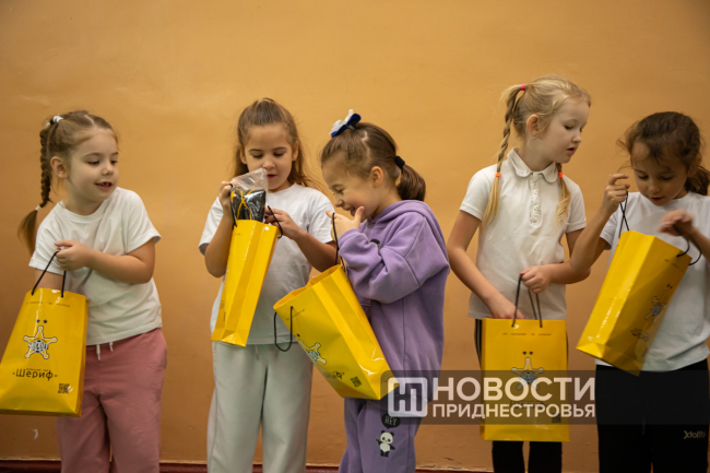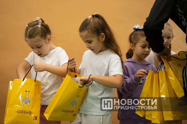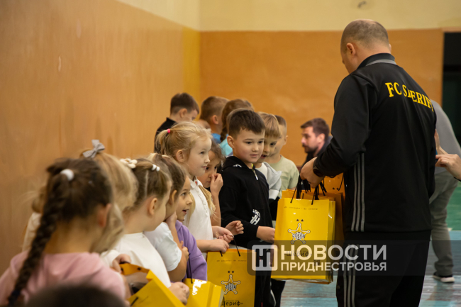Кульминацией встречи стало вручение ученикам брендированных подарков от ФК «Шериф». Первоклассники остались в восторге от такого необычного урока физкультуры.