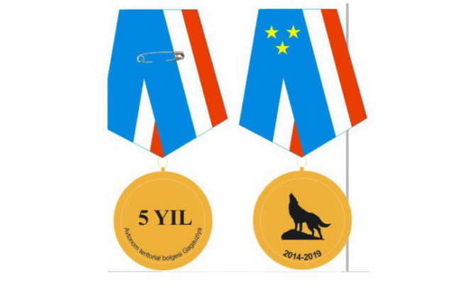 С одной стороны на медали будет изображение волка — символа гагаузского народа, и даты «2014−2019», а с другой — надпись на гагаузском языке «5 YIL» (Пять лет).