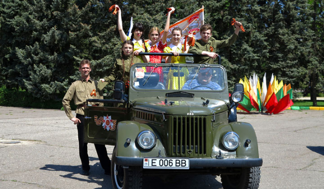 Георгиевские ленточки в Дубоссарах раздавали на ретро-автомобиле