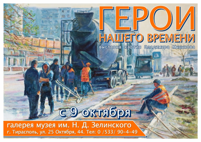 Тирасполь, 6 октября. /Новости Приднестровья/. 9 октября в столичной галерее музея им. Академика Николая Зелинского открывается выставка работ Отличного работника культуры ПМР, приднестровского художника Владимира Мыцыкова. Экспозиция «Герои нашего времени» приурочена к 228-й годовщине основания Тирасполя.