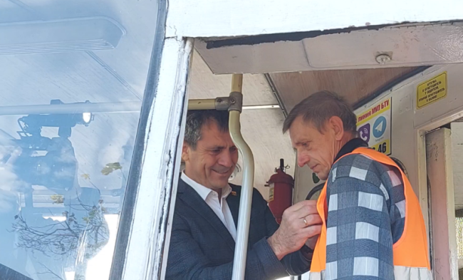 Глава Бендер вручил водителю троллейбуса Виктору Горбушко орден «Трудовая Слава»